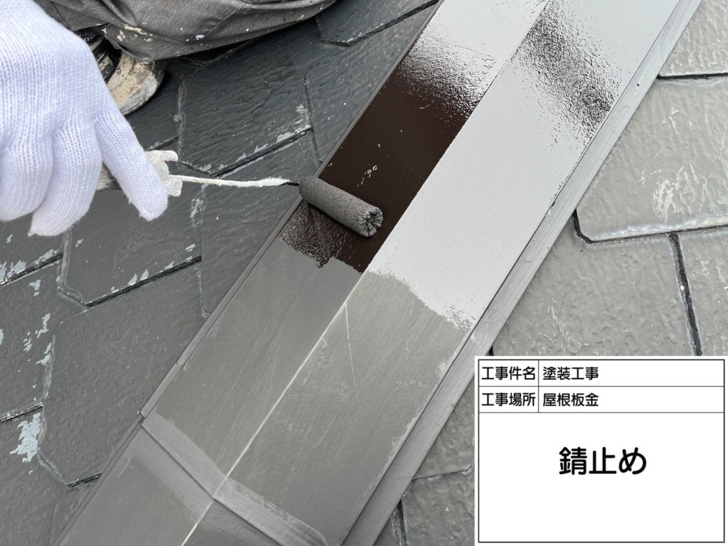 屋根板金錆止め(ファインプライマー)を塗っていきます。