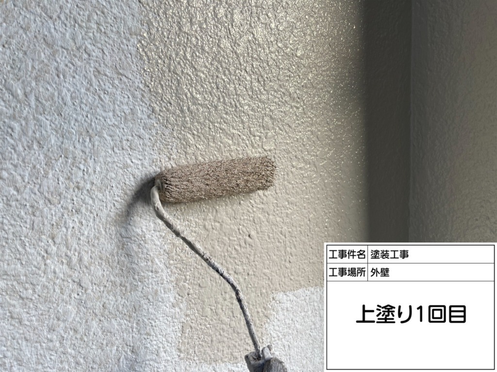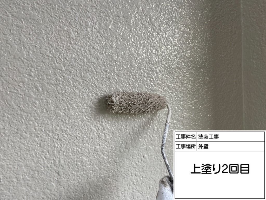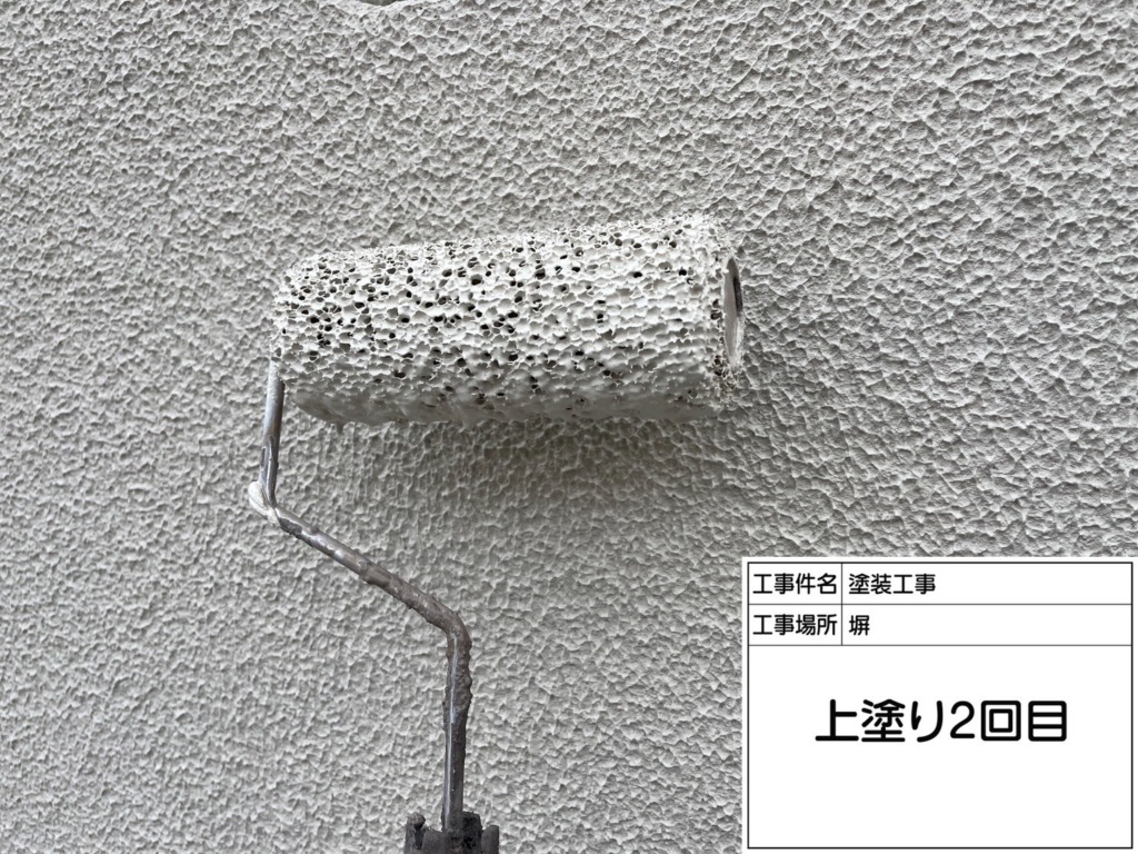 外壁塗装上塗り(パーフェクトトップ2回塗り)を塗っていきます。