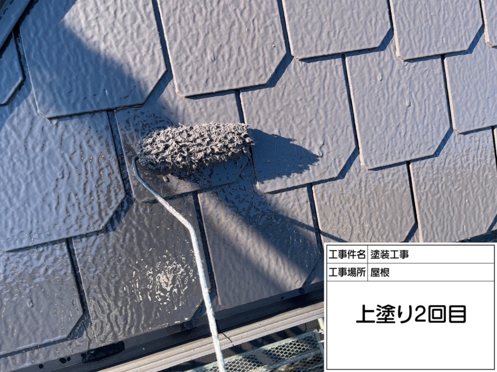屋根塗装上塗り(サーモアイ4F2回塗り)を塗っていきます。