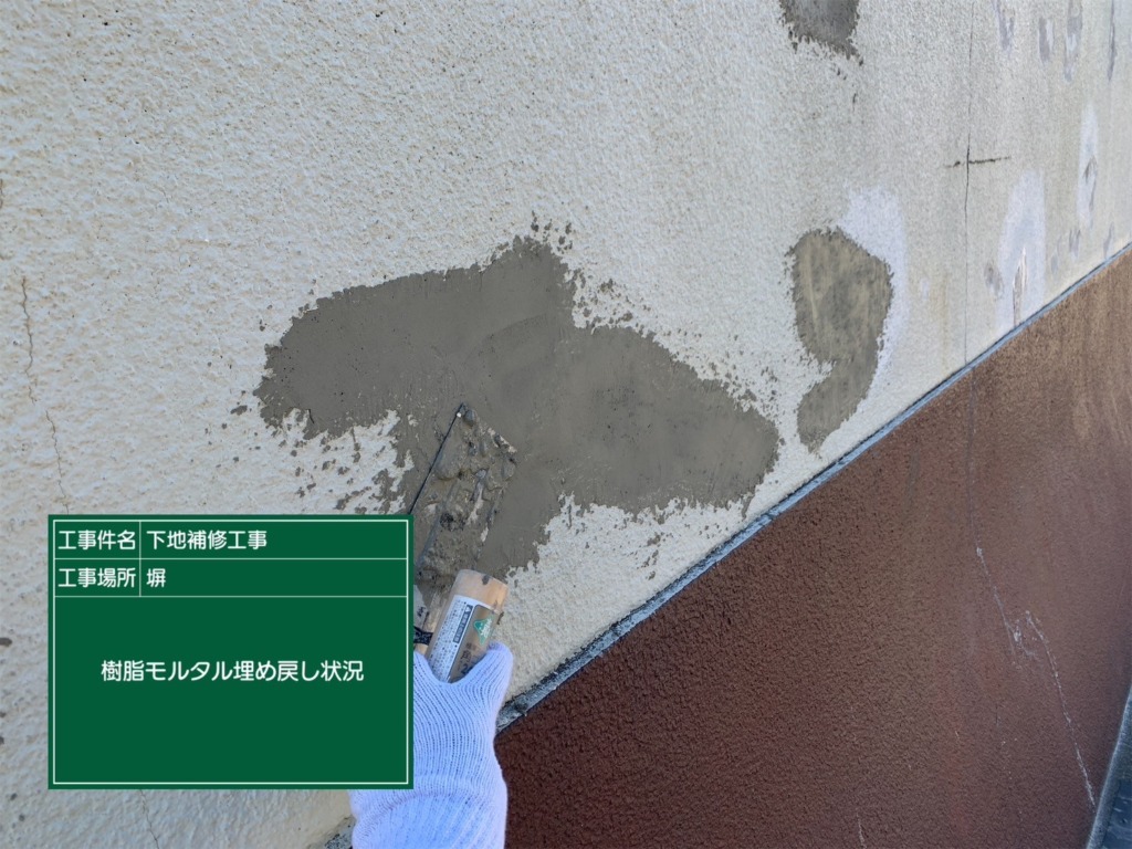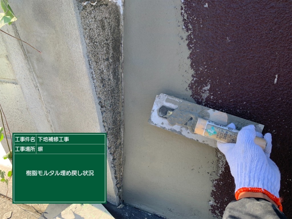 モルタル樹脂で埋め戻していきます。