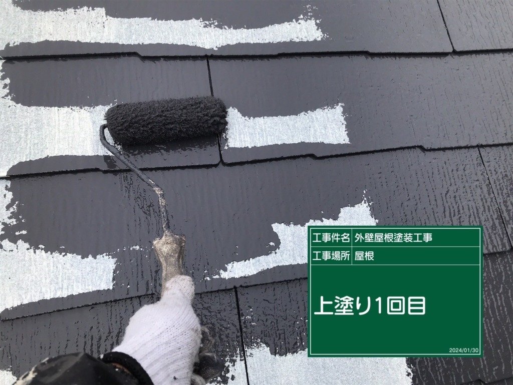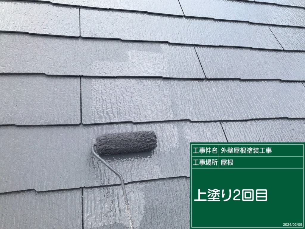屋根塗装上塗り(サーモアイSi2回塗り)を塗っていきます。