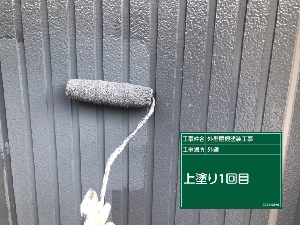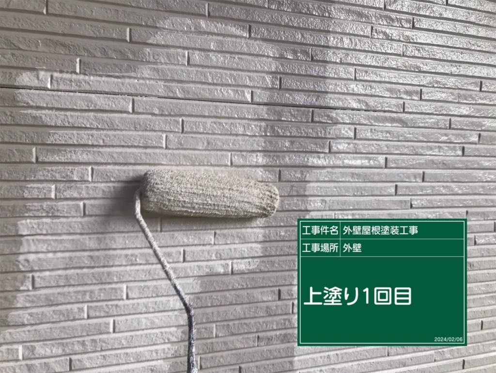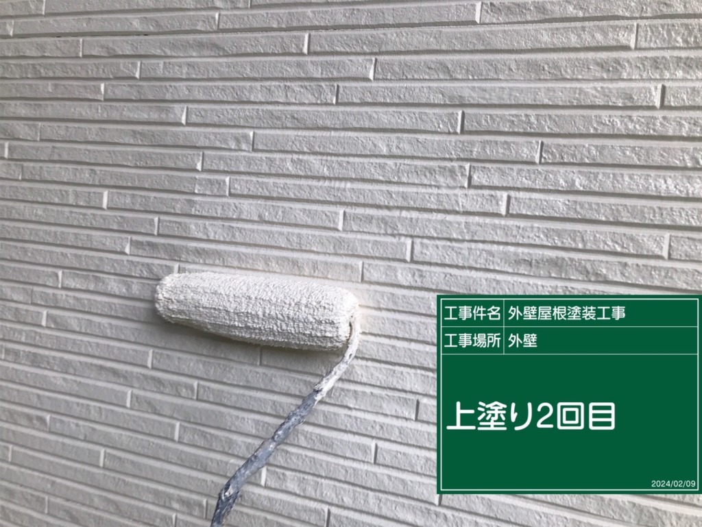 外壁塗装上塗り(パーフェクトトップ2回塗り)を塗っていきます。