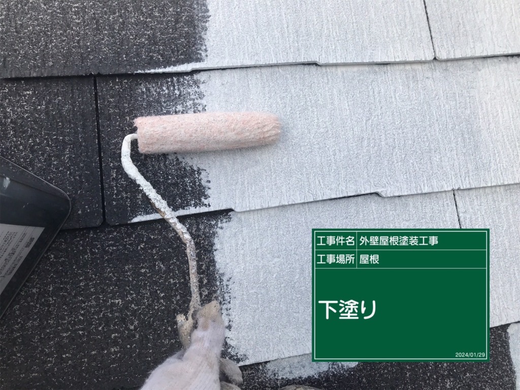 屋根塗装下塗り(サーモアイシーラー)を塗っていきます。