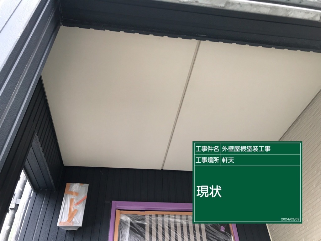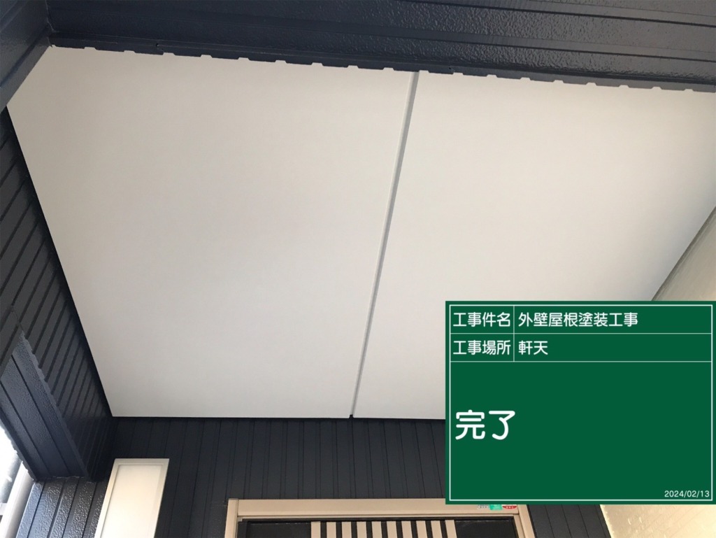 軒天塗装(ケンエース2回塗り)を塗っていきます。