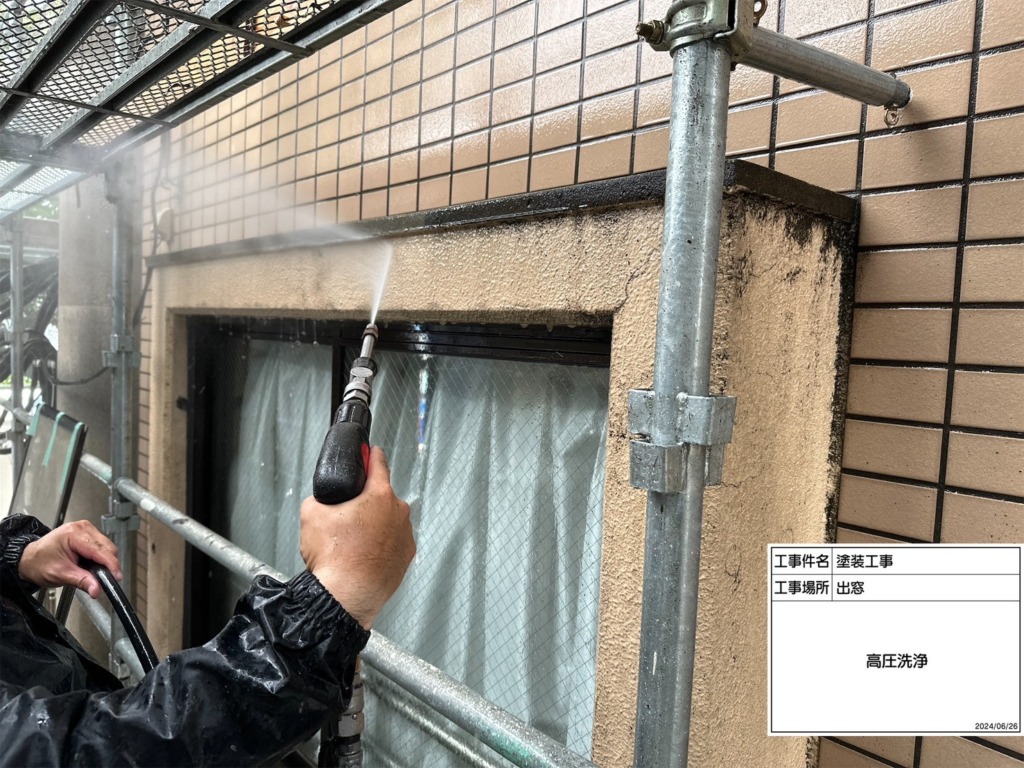 高圧洗浄機を使い、きれいに洗浄していきます。