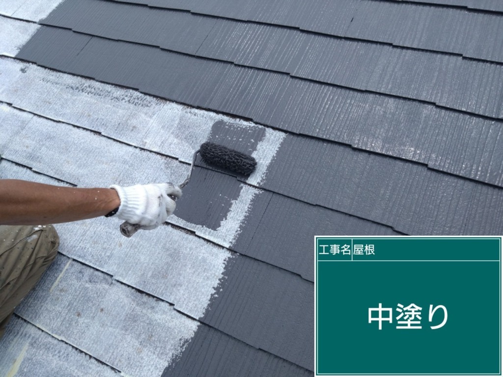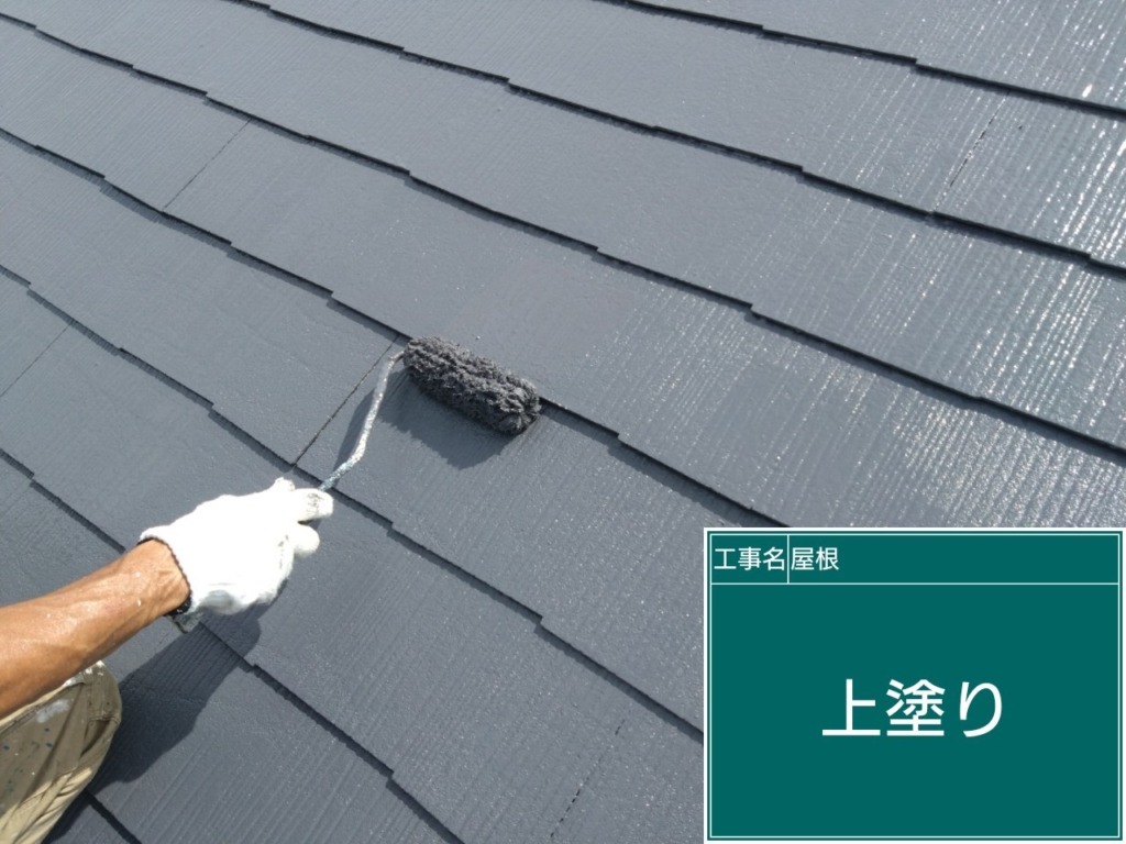 屋根塗装上塗り(サーモアイSi2回塗り)を塗っていきます。