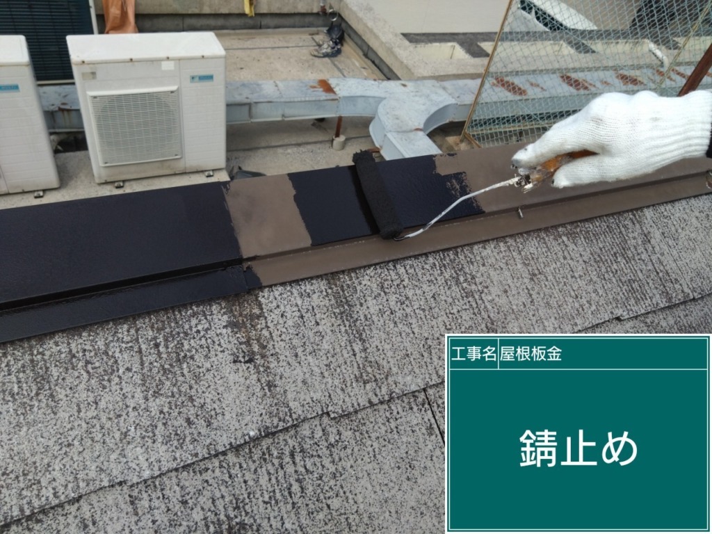 屋根板金錆止め(ファインプライマー)を塗っていきます。