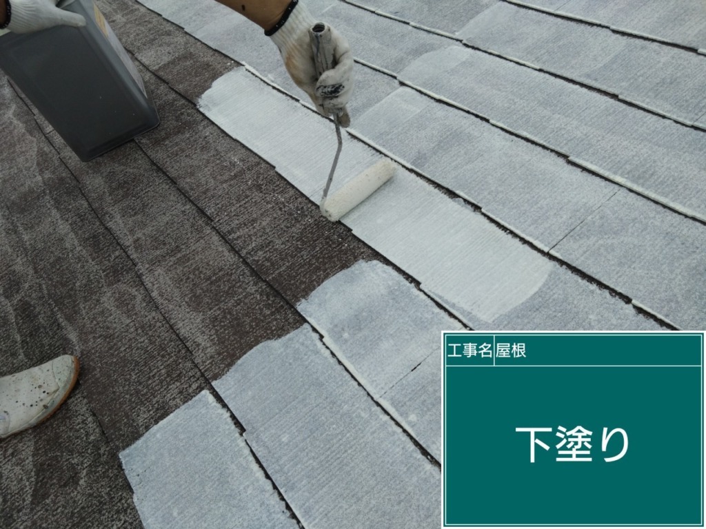 屋根塗装下塗り(サーモアイシーラー)を塗っていきます。