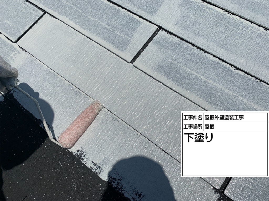屋根塗装下塗り(サーモアイシーラー)を塗っていきます。
