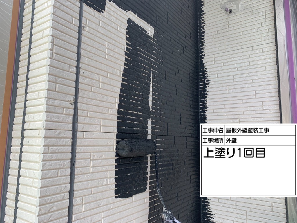 外壁塗装上塗り(パーフェクトトップ2回塗り)を塗っていきます。