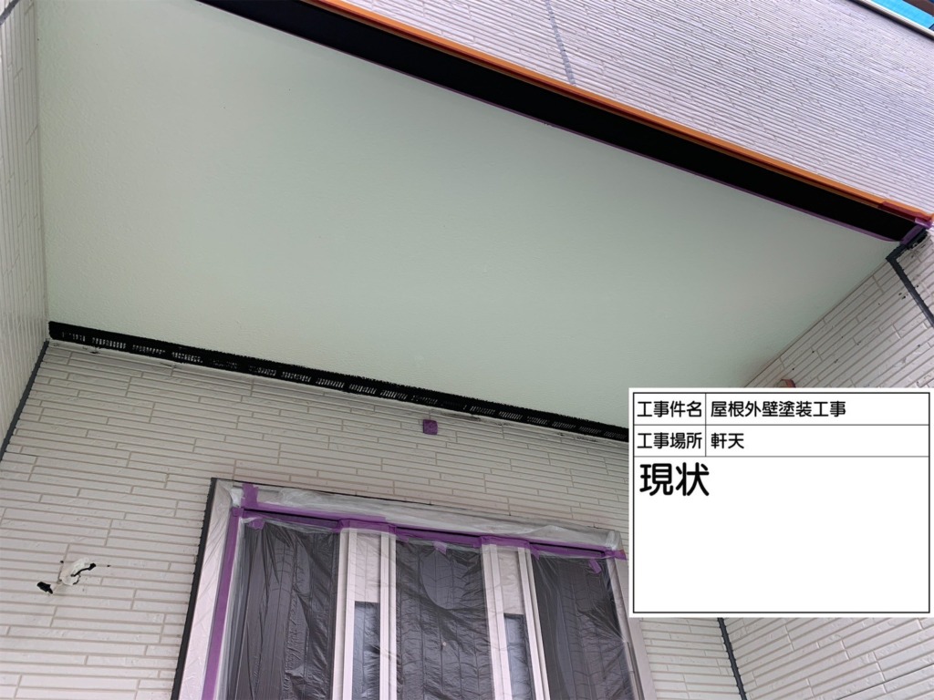 軒天塗装(ケンエース2回塗り)を塗っていきます。