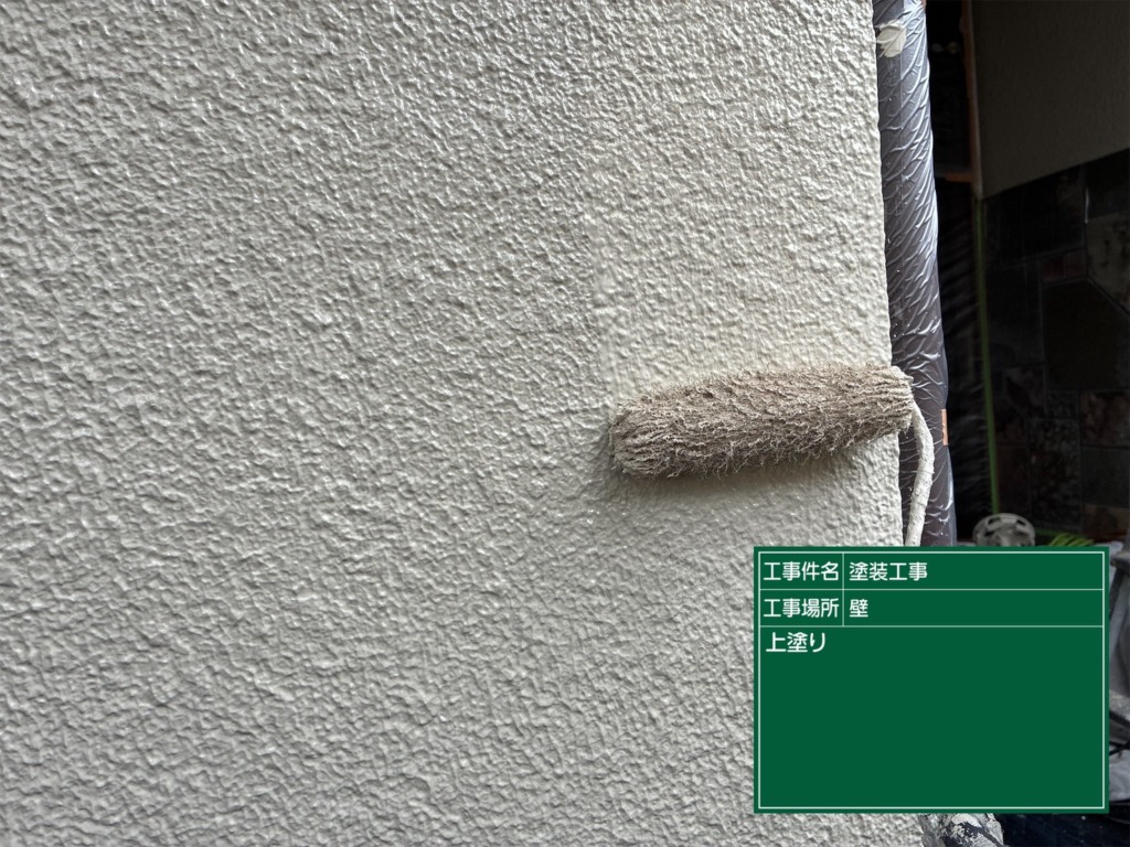 外壁塗装上塗り(パーフェクトシーラー)を塗っていきます。