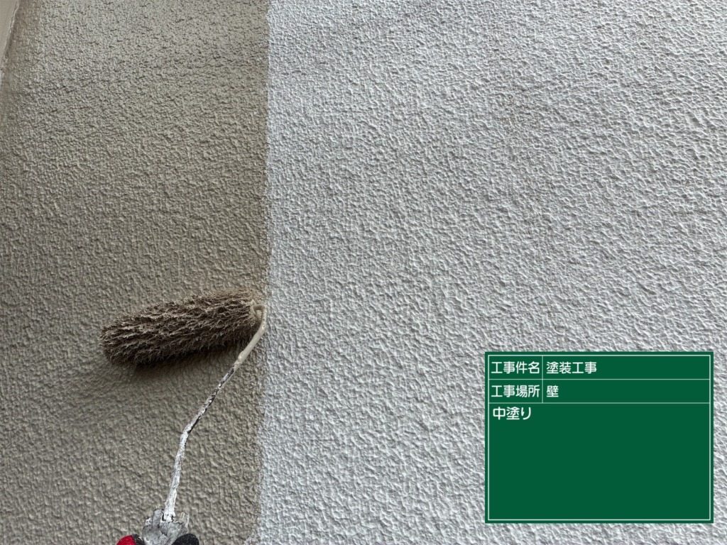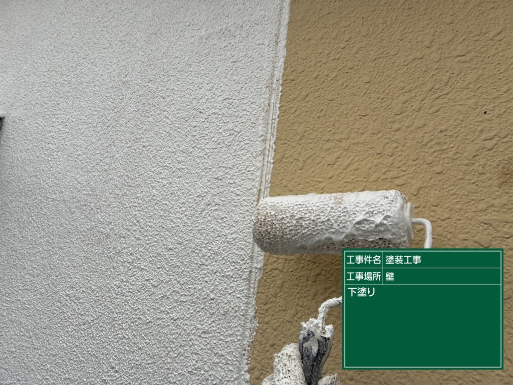 外壁塗装下塗り(アンダーフィラー弾性エクセル)を塗っていきます。