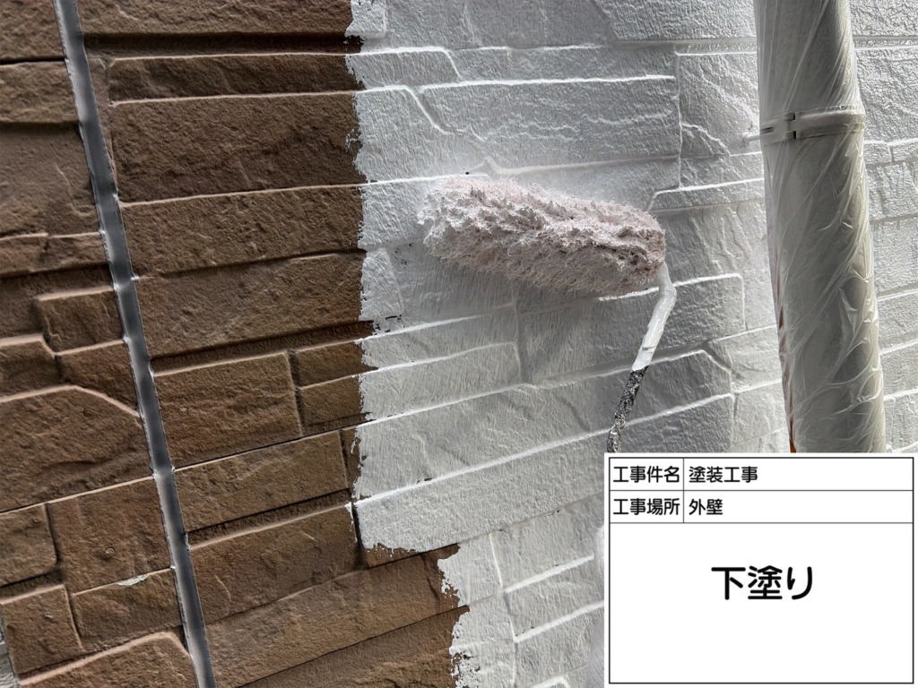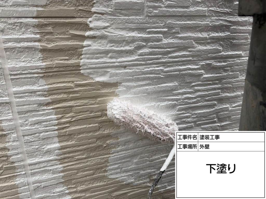 外壁塗装下塗り(パーフェクトサーフ)を塗っていきます。