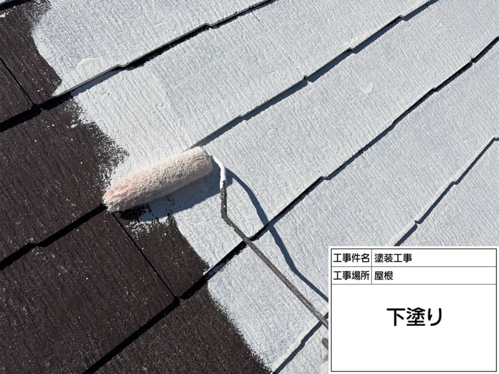 屋根塗装下塗り(サーモアイシーラー)を塗っていきます。
