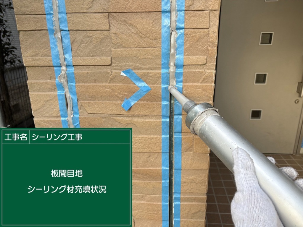 コーキングガンを使い、目地部分にシーリング材を充填していきます。