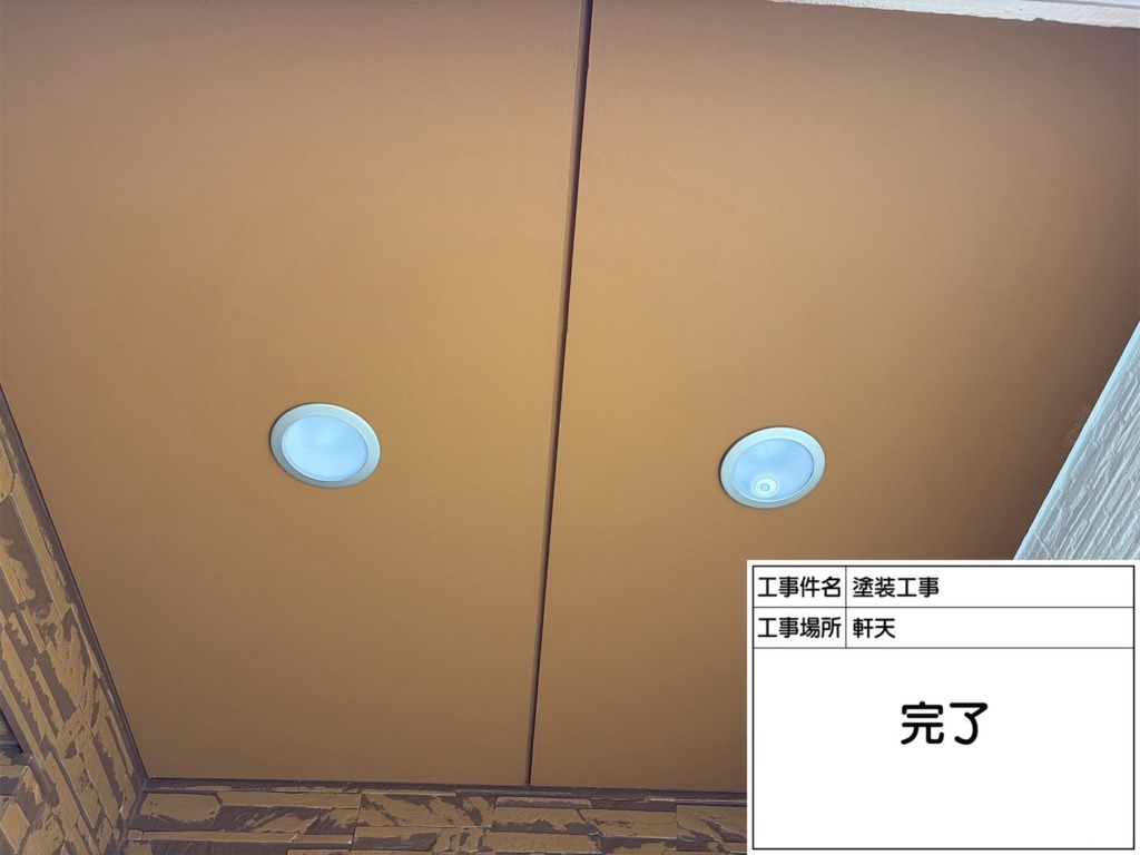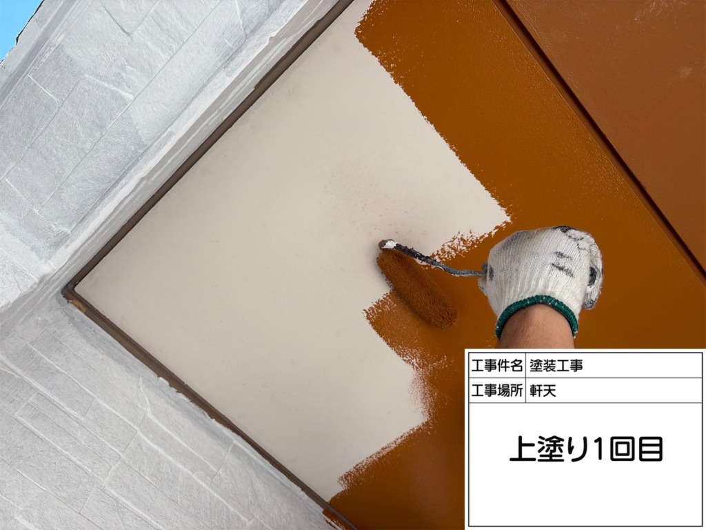 軒天塗装(ケンエース2回塗り)を塗っていきます。