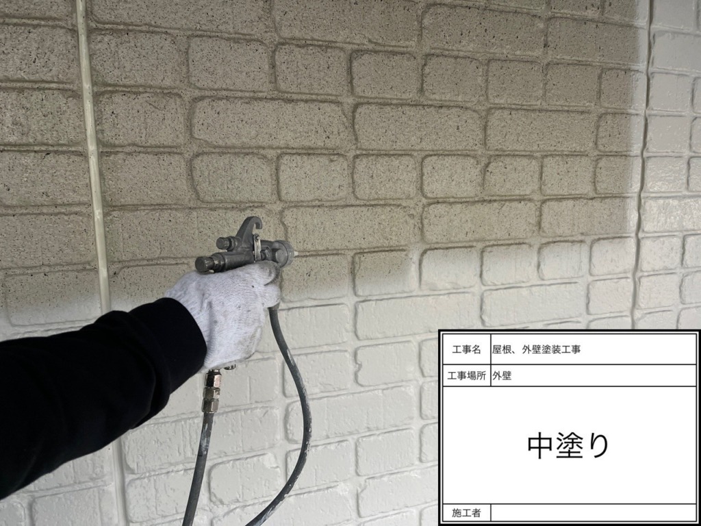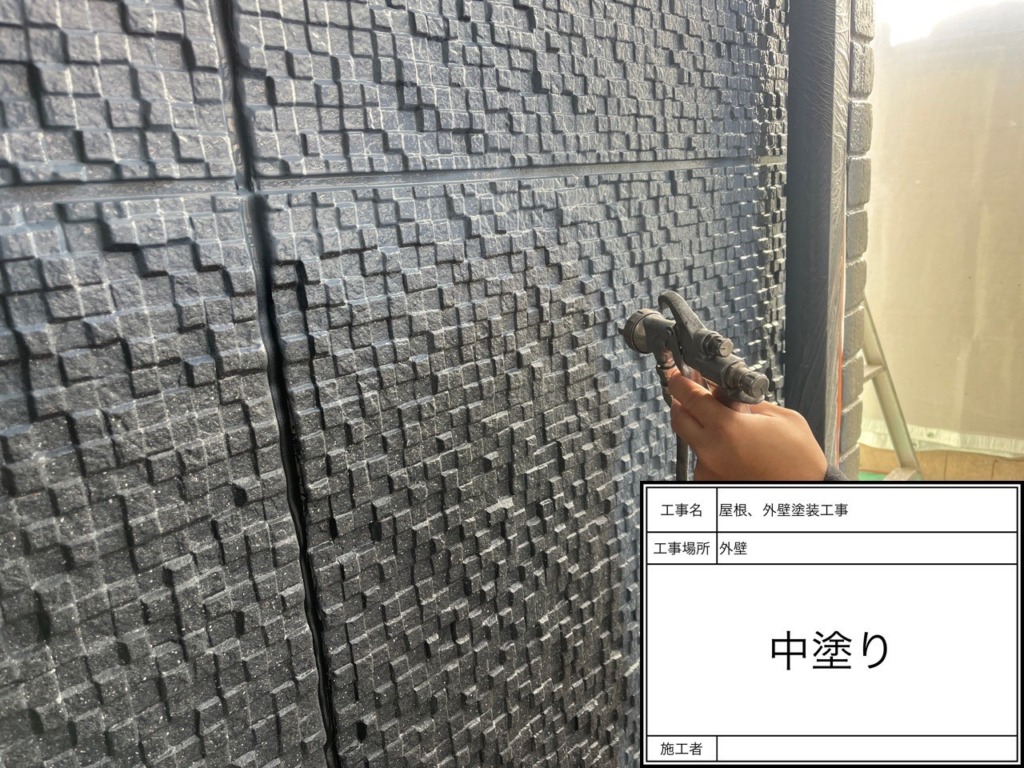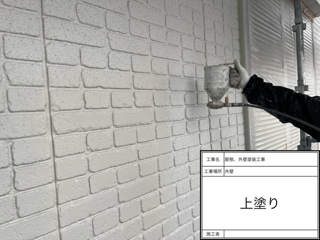 外壁塗装上塗り(クリスタルアートセラミック2回塗り)を塗っていきます。