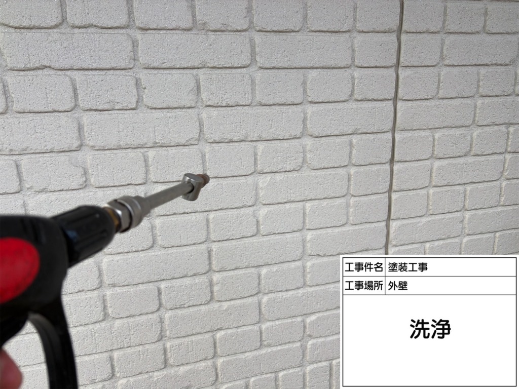 まずは、高圧洗浄機を使い家全体を洗浄していきます。