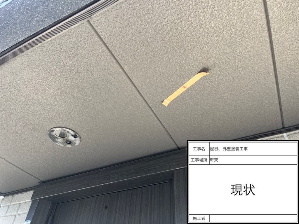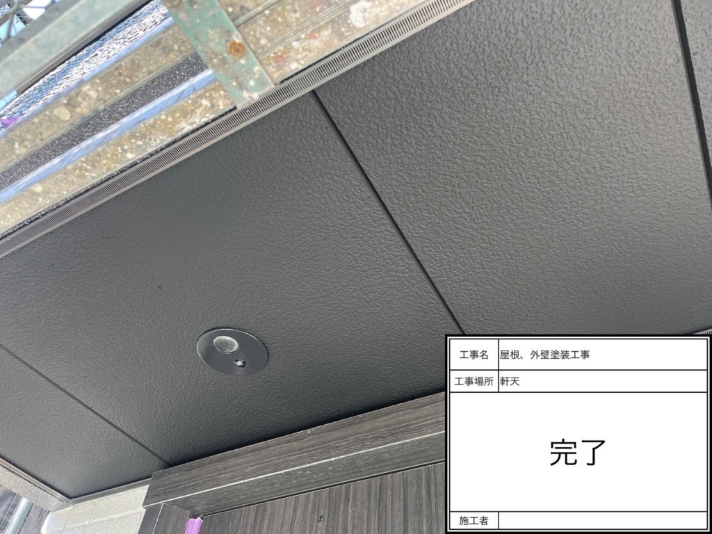 軒天塗装(ケンエース2回塗り)を塗っていきます。