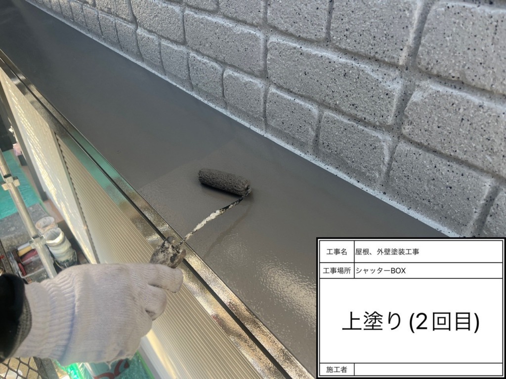 付帯塗装(グランセラトップファイン2回塗り)を塗っていきます。