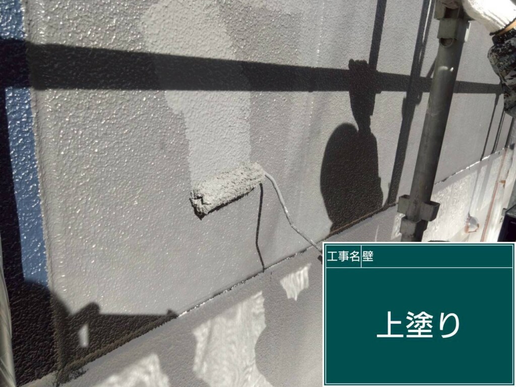 外壁塗装上塗り(パーフェクトトップ2回塗り)を塗っていきます。
