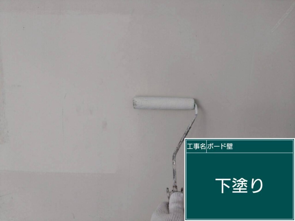 外壁塗装下塗り(アンダーフィラー弾性エクセル)を塗っていきます。