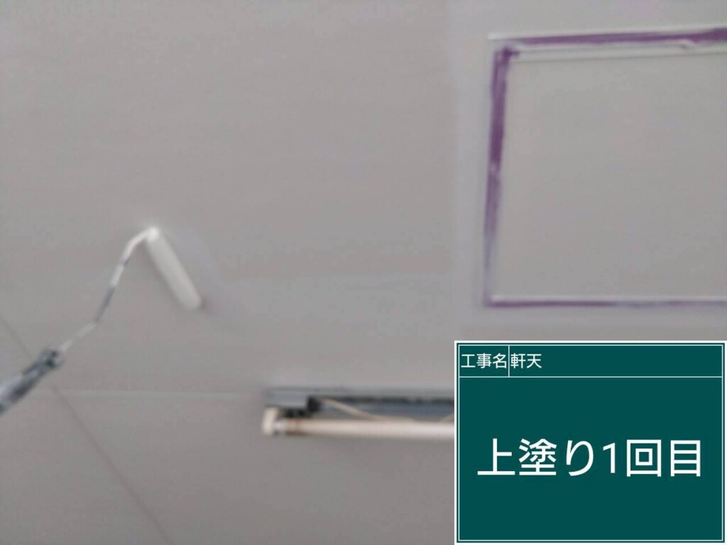 軒天塗装(ケンエース2回塗り)を塗っていきます。