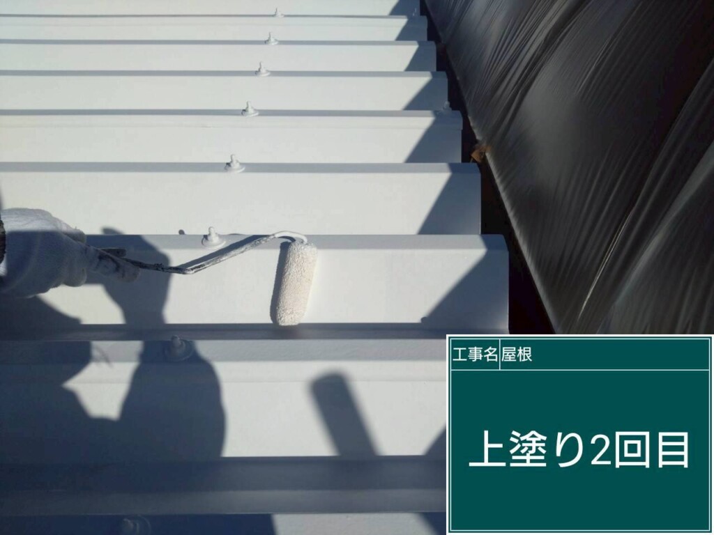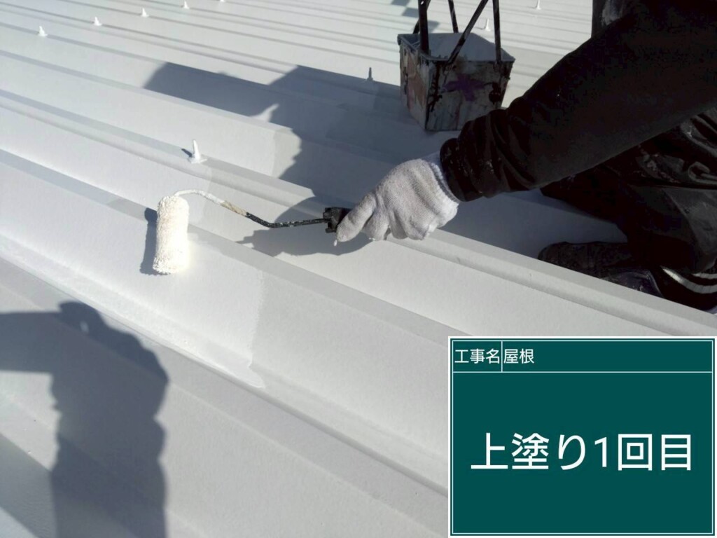 屋根塗装上塗り(サーモアイSI2回塗り)を塗っていきます。
