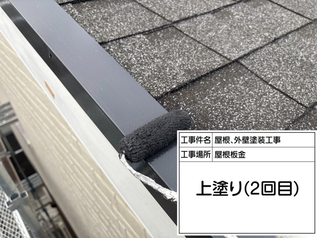 付帯塗装(ファインシリコンフレッシュⅡ2回塗り)を塗っていきます。