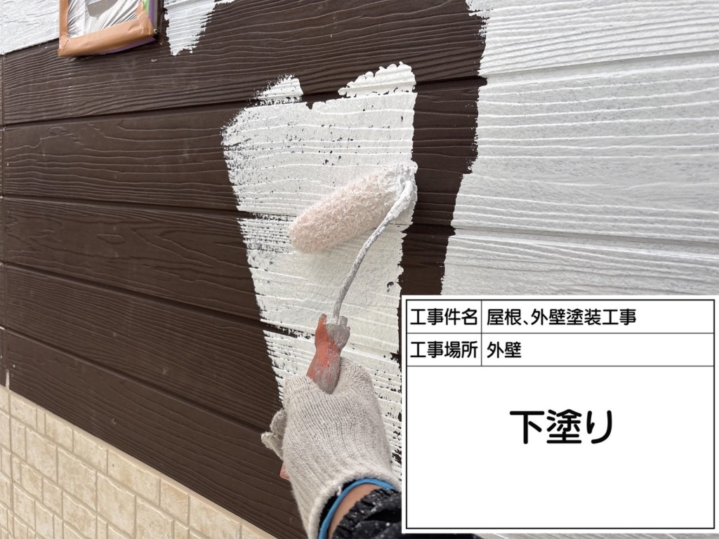外壁塗装下塗り(WBサーフ)を塗っていきます。
