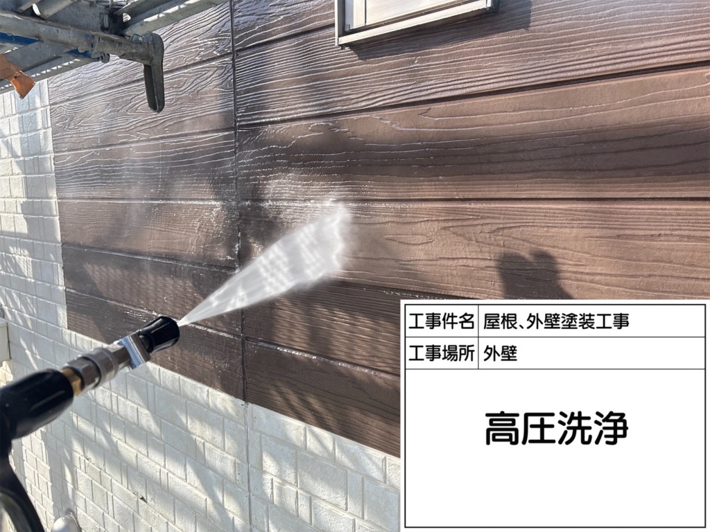 まずは、高圧洗浄機を使い家全体を洗浄していきます。