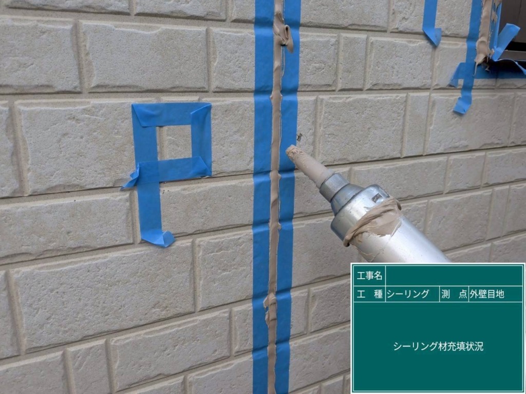 プライマー塗布後、コーキングガンを使い目地部分にシーリング材を充填していきます。