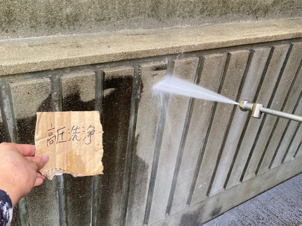 まずは、高圧洗浄機を使い古い塗膜や汚れなどしっかりと落としていきます。